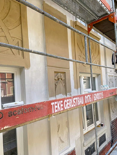 Kein Projekt ist genau wie das andere, daher empfehlen wir häufig Musterachsen und Probeflächen anlegen zu lassen. Sie geben allen Projektbeteiligten die größtmögliche Planungssicherheit. Anhand von Mustern können ästhetische Zielstellungen abgestimmt werden; Probeflächen sind notwendig, um die materialspezifischen Aspekte der zum Einsatz kommenden Konservierungsmittel abzuwägen. Beides trägt dazu bei Zeit- und Kostenaufwand für ein nachhaltiges Projekt sicher einzuschätzen zu können.