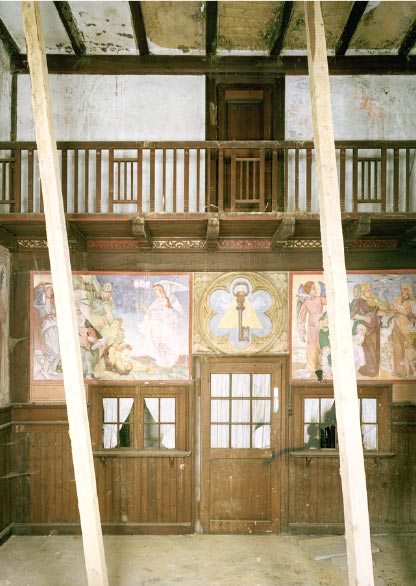 Das bereits seit Mitte der 1940er Jahre unter Denkmalschutz stehende Gebäude wurde 2005 durch einen Brand stark beschädigt und steht seither leer. Um das Ausmaß der Schäden zu ergründen und das Gebäude langfristig einer neuen Nutzung zuzuführen wurde seitens der Auftraggebrin eine restauratorische Befundsicherung in Form eines Raumbuchs beauftragt. Diese soll als Grundlage für die Ausarbeitung von Empfehlungen zum weiteren Umgang mit dem Gebäude genutzt werden. Am Projekt beteilig waren außerdem Anke-Doreen-Heinze als Architektin und die Fotografen Markus Dorfmüller und Johanna Klier.